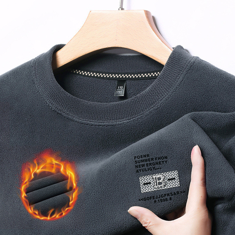 両面奥粒パイル長袖ガーディアン男性秋冬ベルベット厚手丸襟カジュアル保温シャツtシャツ男