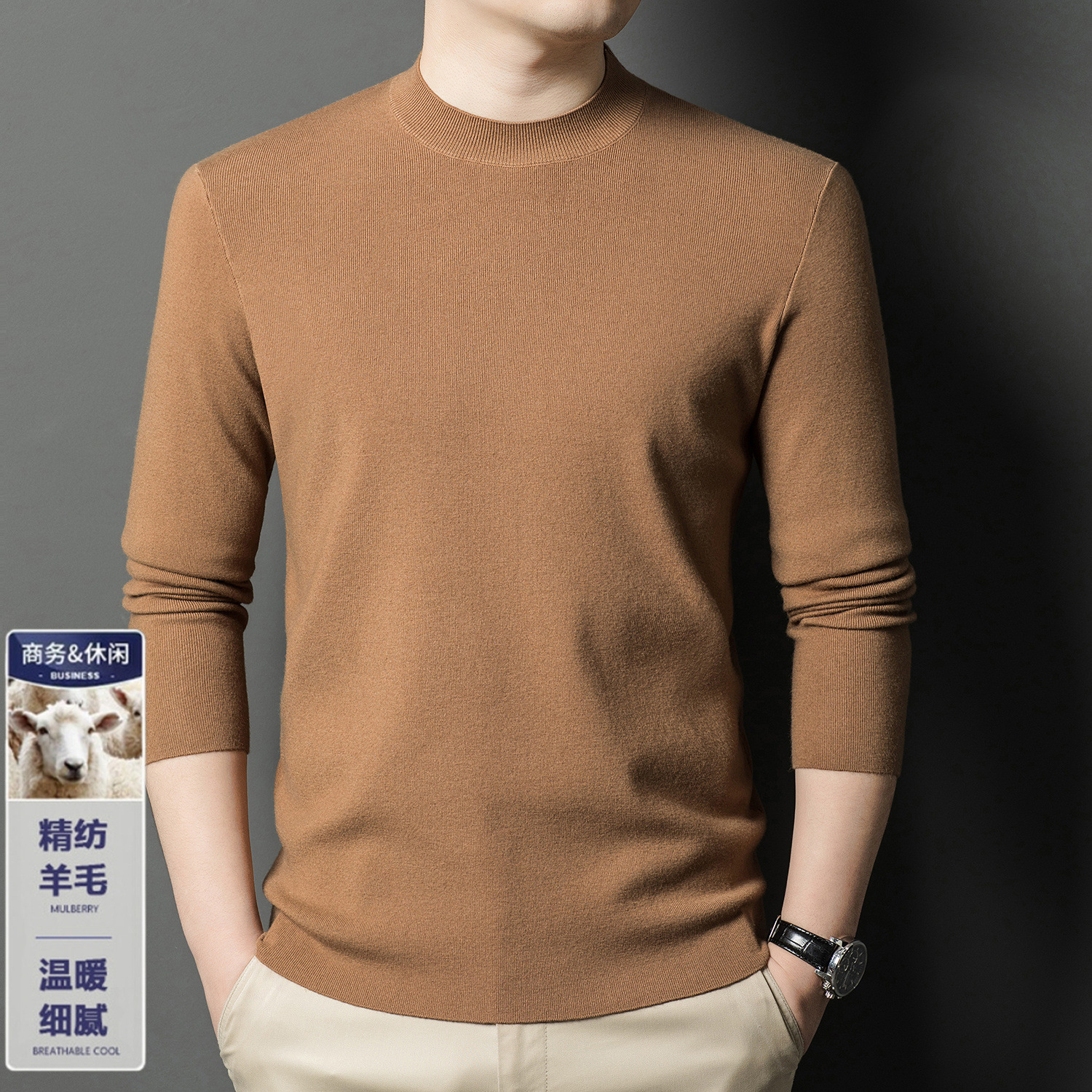 厚手保温長袖ニットセーター男性秋冬半高襟シンプルな