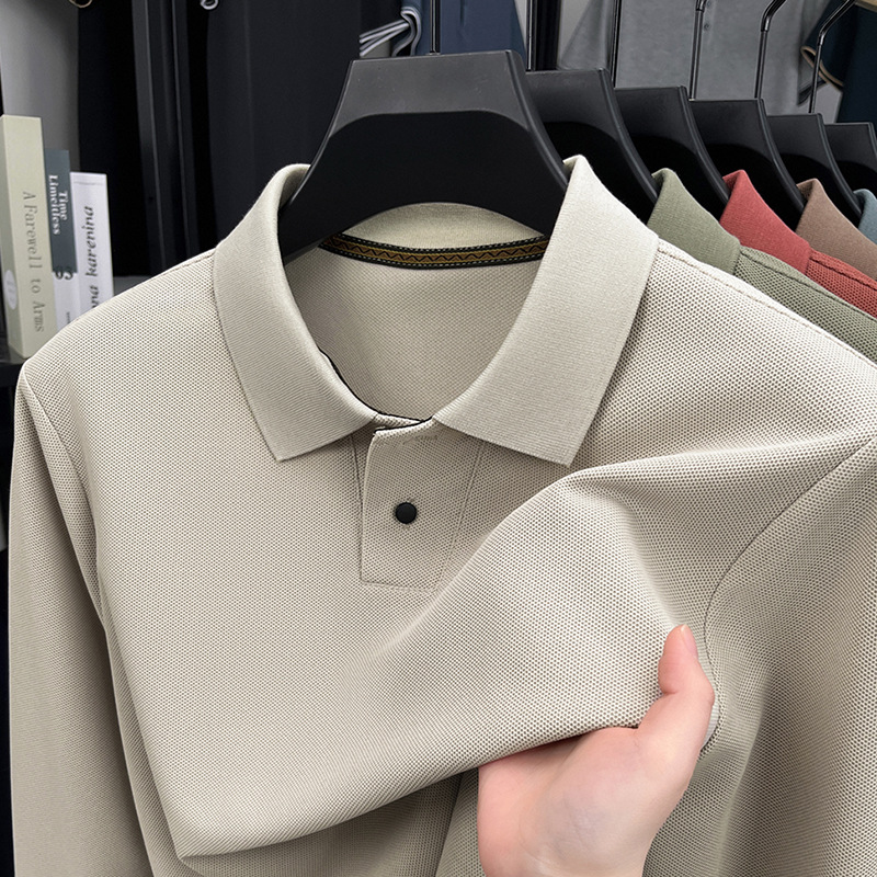 国境を越えた対外貿易長袖poloシャツ男性春秋純色ゆるい上着カジュアルな中年tシャツ男性