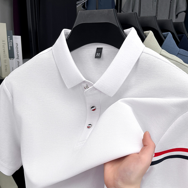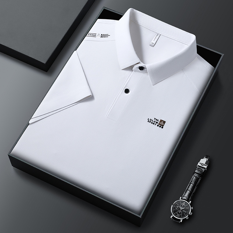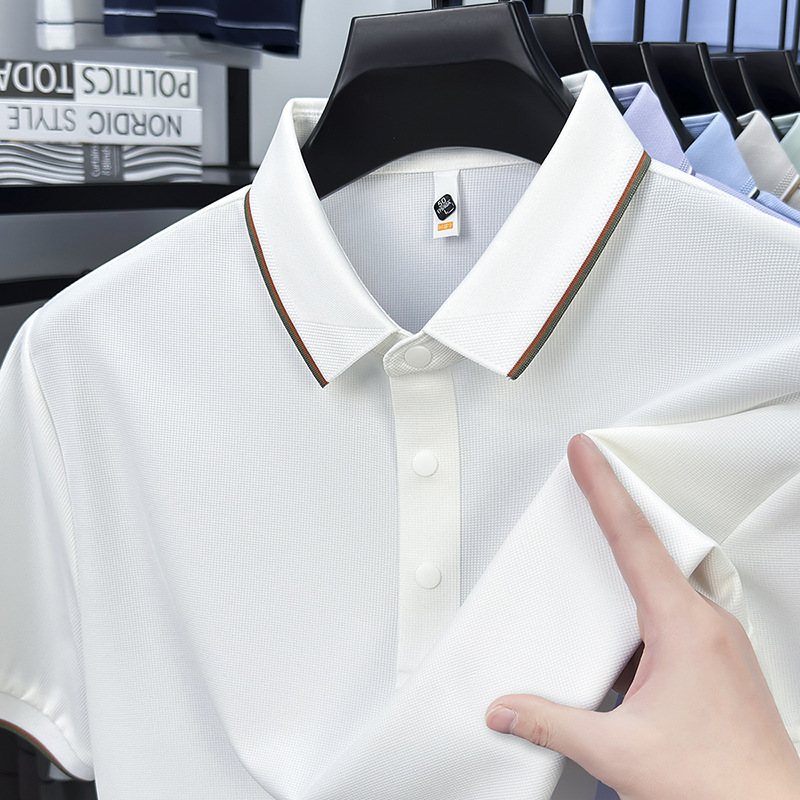 氷糸弾力薄手半袖ポロシャツ男性夏新商品ビジネスカジュアル百合無熱抗しわtシャツ男