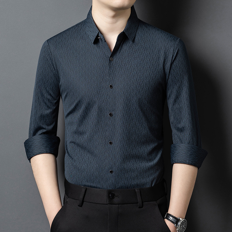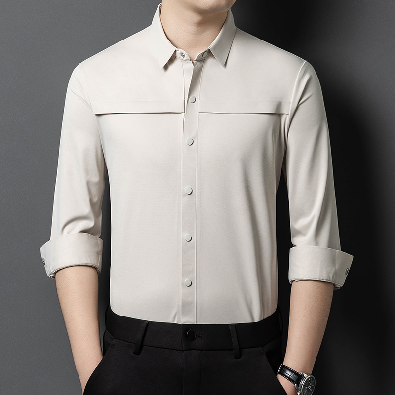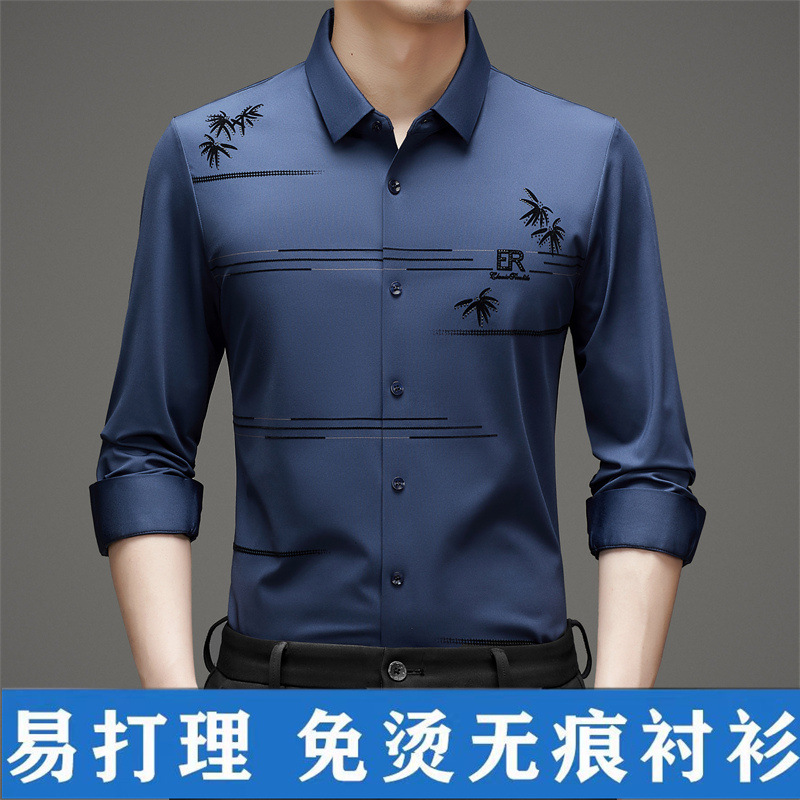 クロスボーダー氷糸無痕長袖シャツ男性春秋新作中年カジュアル抗シワ無熱弾力シャツ男