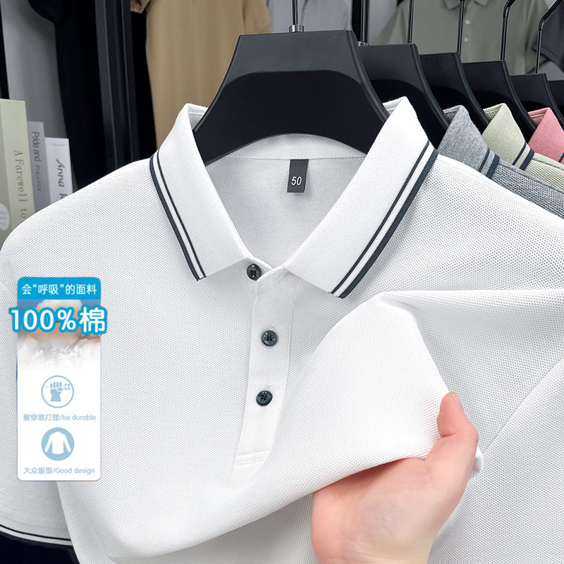 純綿半袖ポロシャツメンズ夏新作吸汗通気性ビジネスカジュアル中年折り襟tシャツトップス