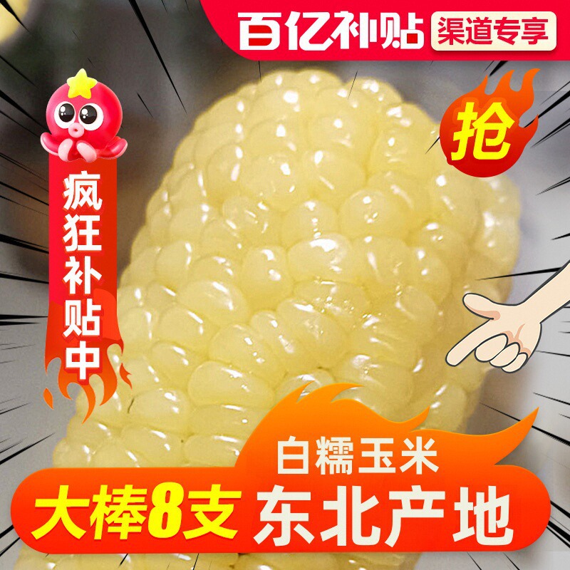 トウモロコシの新鮮なモチモチのトウモロコシ10本の白いモチモチの大きい棒の茹で米の新鮮な甘い粘度の真空は朝食を詰めます。