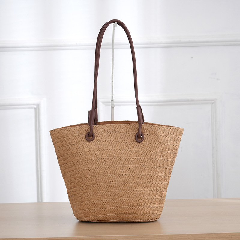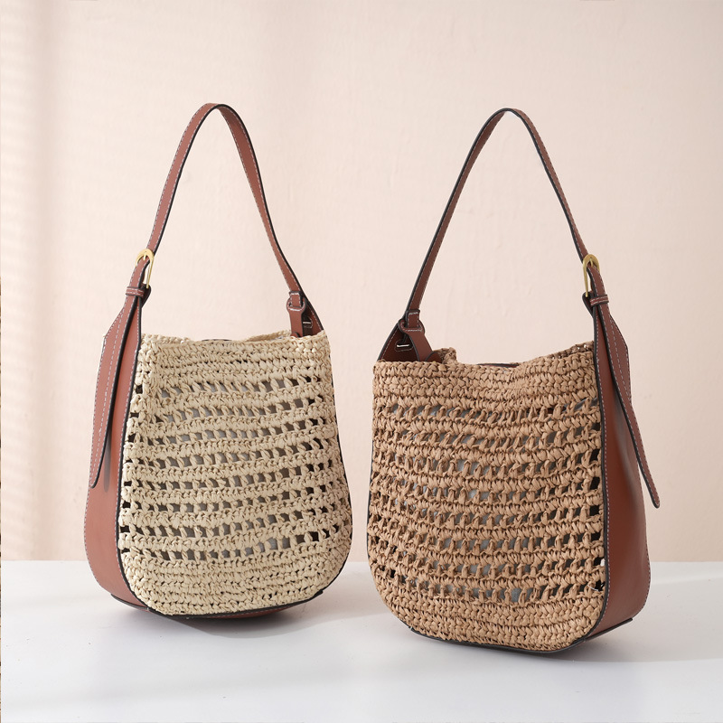 2025 春の新ファッションショルダーレディースストローバッグ海辺の休暇ビーチバッグショルダー紙織トートバッグ