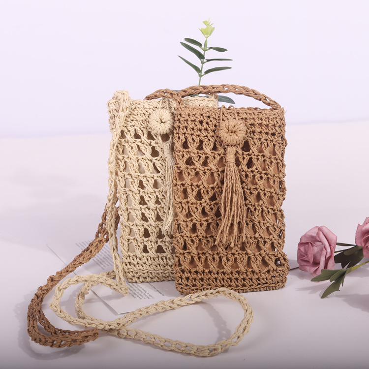 わらバッグ女性の秋の新しいボヘミアンスタイル牧歌的な織りクロスボディバッグ紙ロープ織りポータブルショルダーバッグ