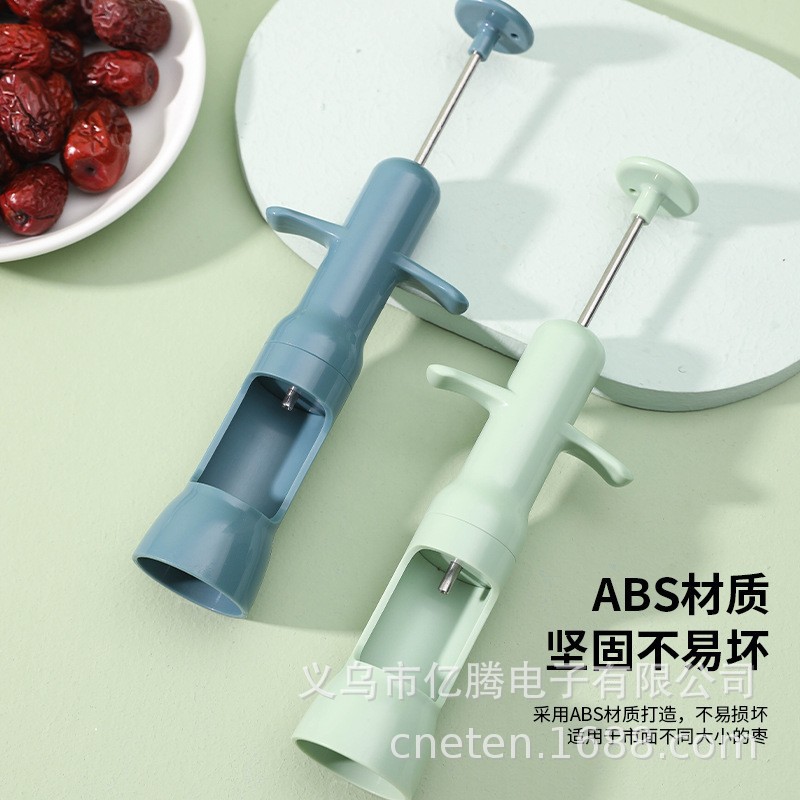 新しい赤いナツメのさくらんぼの核除去器の針筒は圧力式の速い核除去の台所のツールのプラスチックは芯を取って種を除去します。