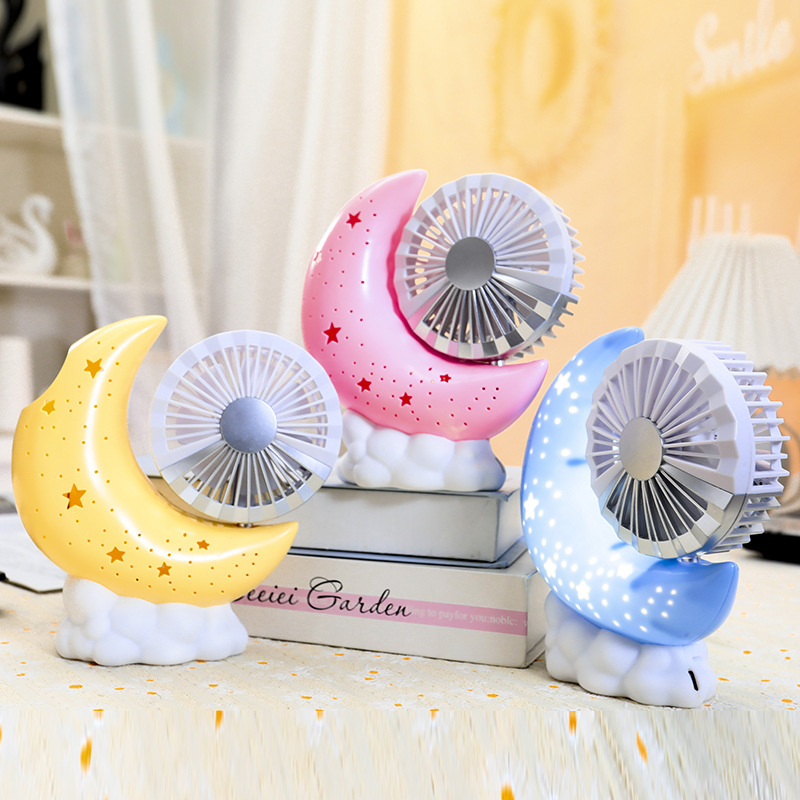 調節可能な角度の筆筒は月の台座の扇風機の星空の雰囲気の明かりの3段の速度を調整して扇風機を持ちます。