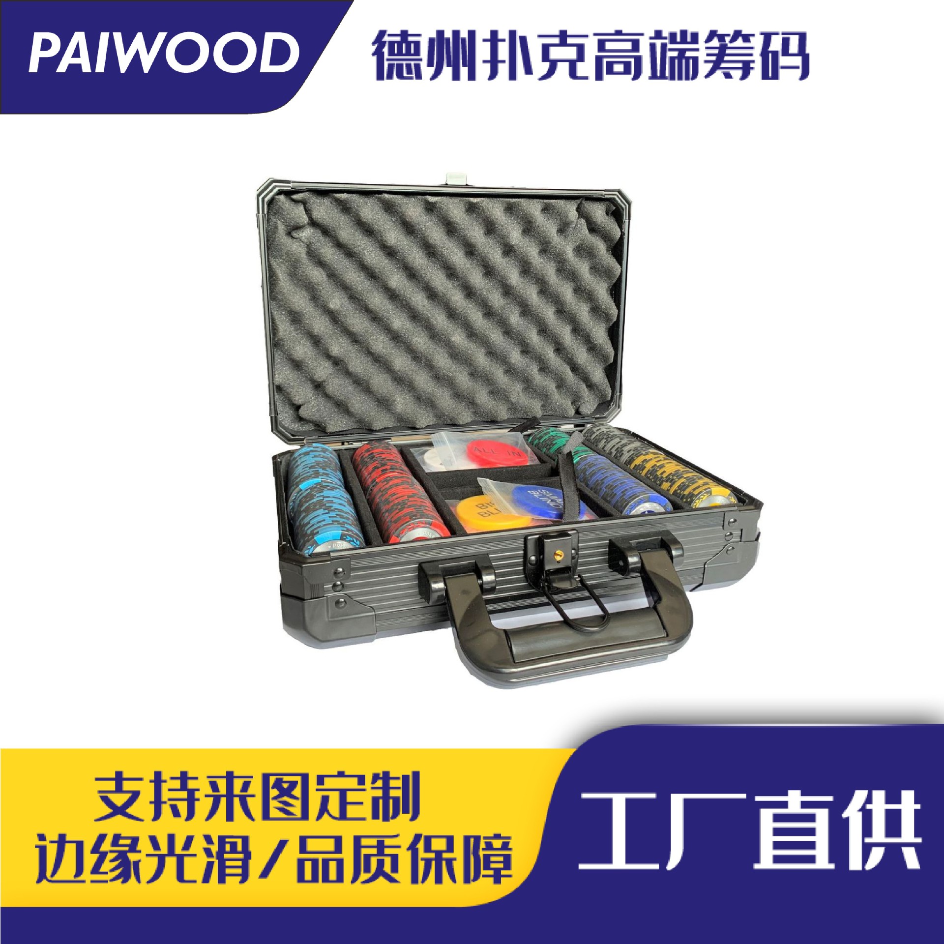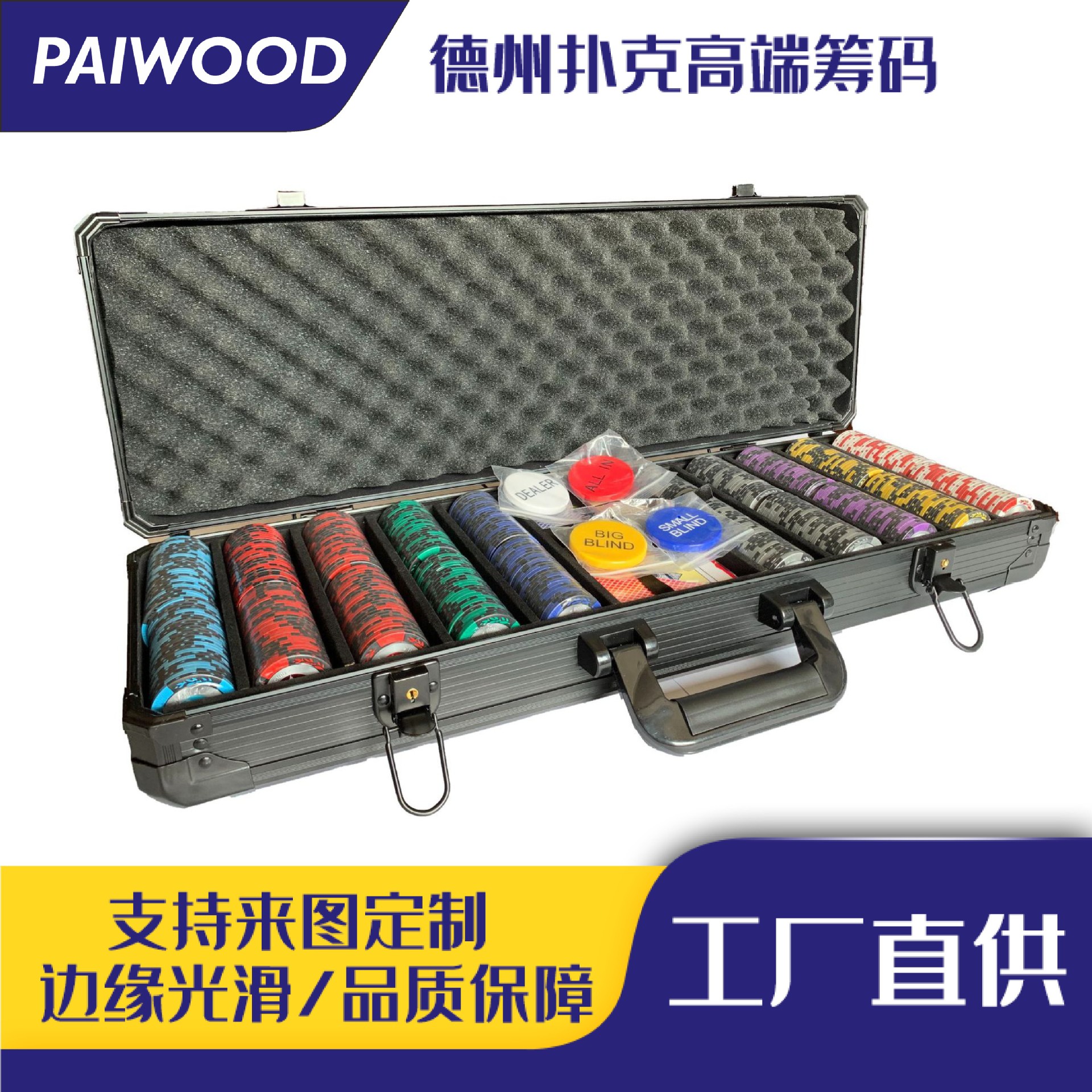 500枚300枚WPTテキサスホールデムセラミックチップセット、ハイエンドイベント専用フルセット、ポーカー用、表面印刷あり/なし