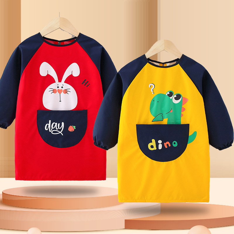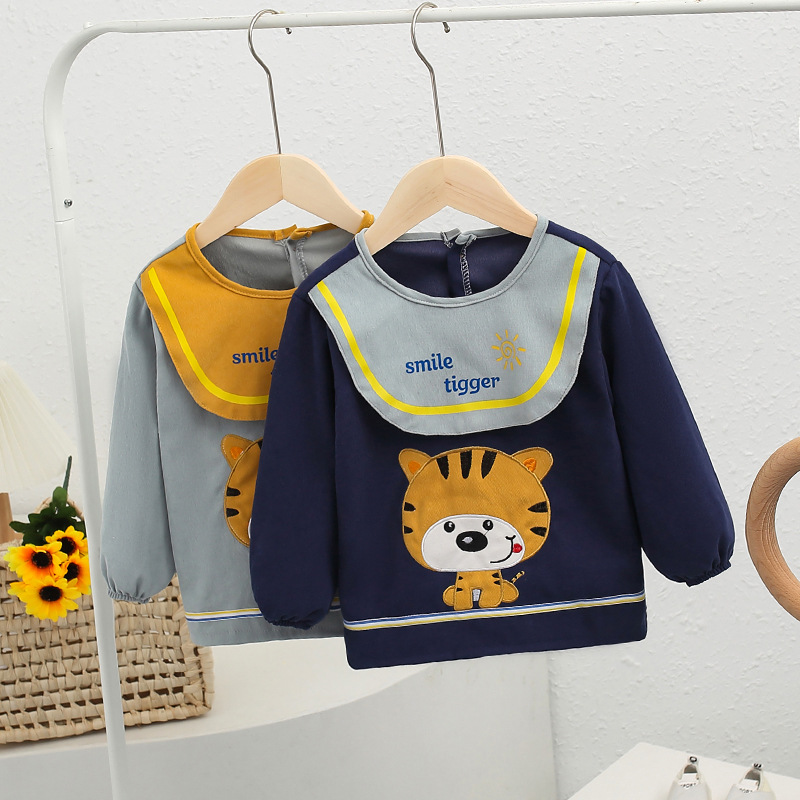 赤ちゃんの食事カバーの子供のエプロンは逆にご飯のポケットを着て防水して汚れを防ぐ絵の長袖の外に秋冬のご飯の服を着ます。