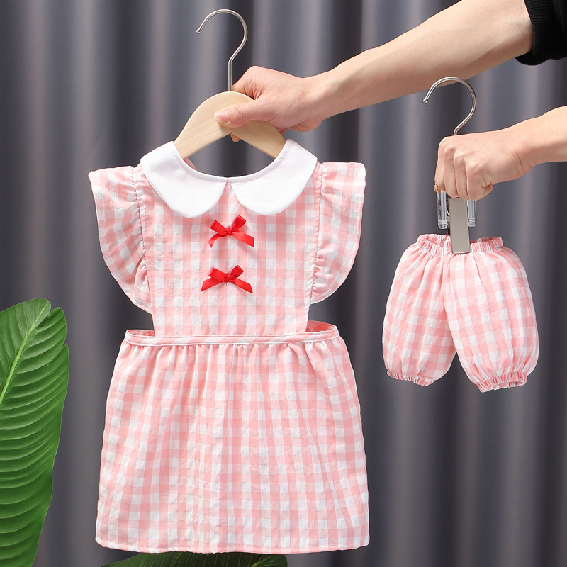子供のワンピースのカバーの外は汚れ防止の歩行服を着ています。