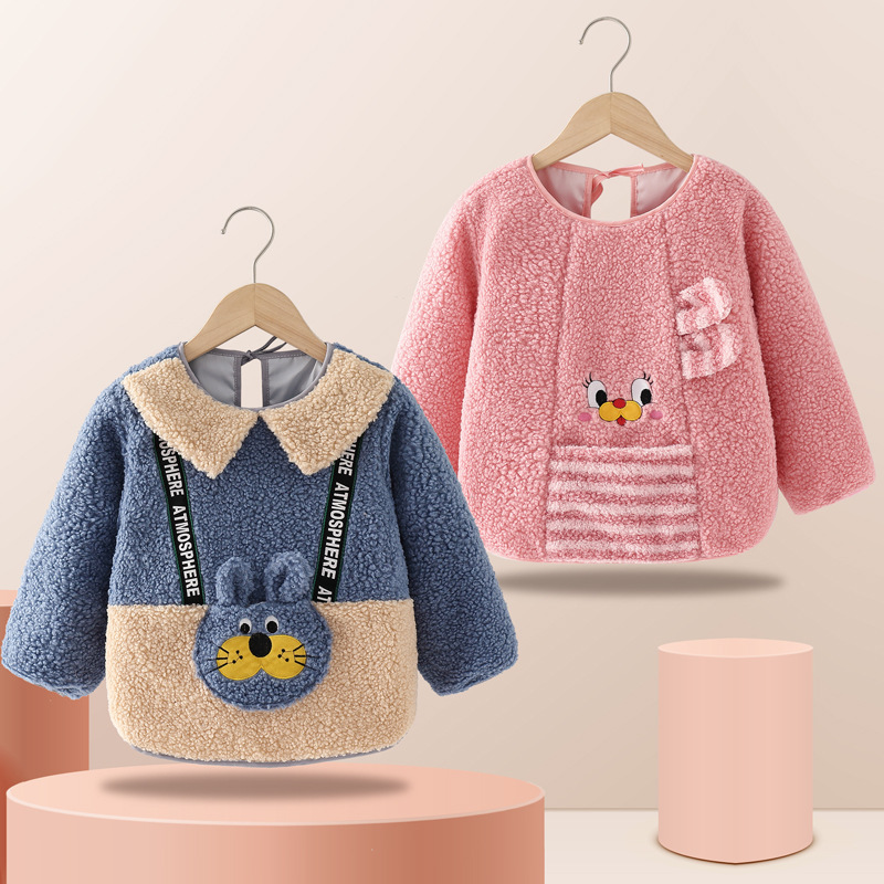 カバー子供秋冬食事防水汚れ防止エプロン赤ちゃん長袖よだれかけ女の子幼稚園保護服ご飯ポケット