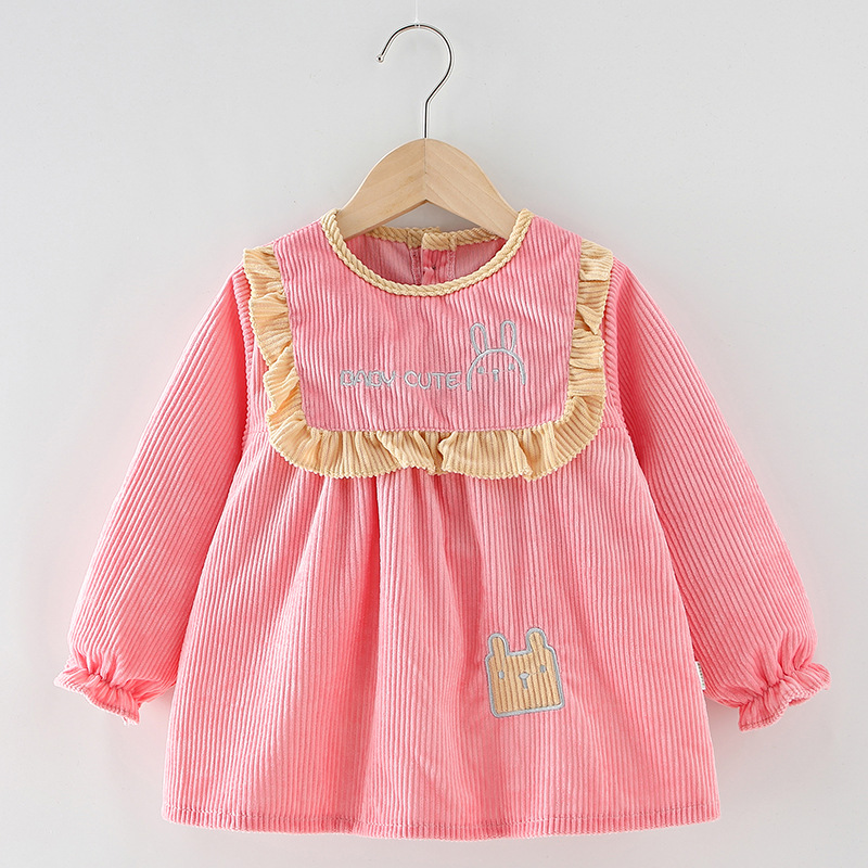 純綿の女性の赤ちゃんのカバーの赤ちゃんの食事は秋冬の長袖のお姫様のスカートの防水の汚れ防止のコーデュロイを囲んで着ます。