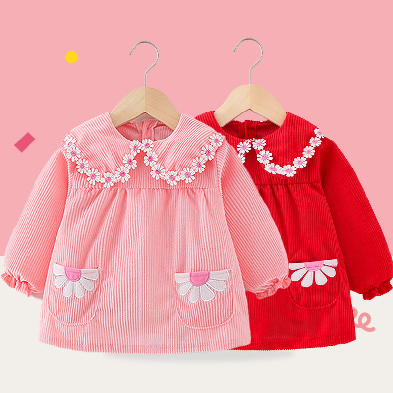 赤ちゃんのカバーの子供のコーデュロイ秋冬の長袖の赤ちゃんのよだれかけの防水汚れ防止の女の子の新年の女の子の食事服