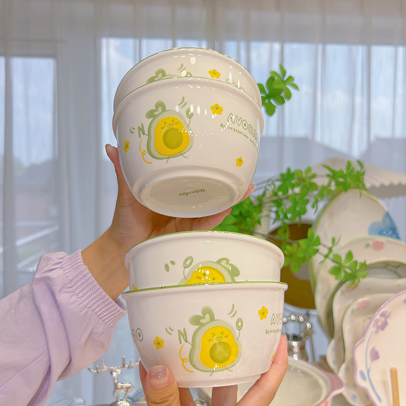 かわいいアボカドセラミックライスボウル、見栄えの良いボウル、家庭用食事用の新しい人気のスタイル、パーソナライズされたかわいい食事ボウル
