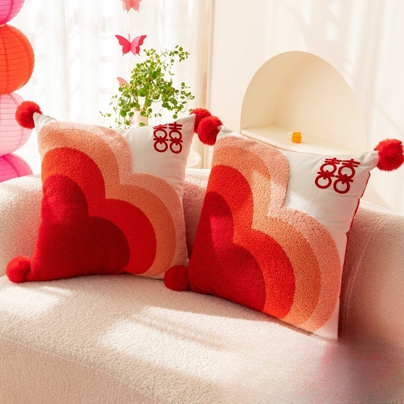 お祝いソファペア結婚式の部屋の装飾枕アレンジメント結婚式の赤い結婚式の寝室のクッションベッドサイドリビングルーム