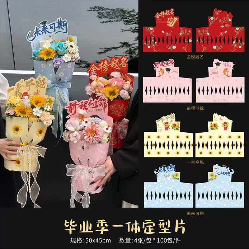 Huaxi 卒業シーズンオールインワンスタイリングシートで花の包装紙と花束の両方を獲得 DIY ゴールデンリスト花包装紙