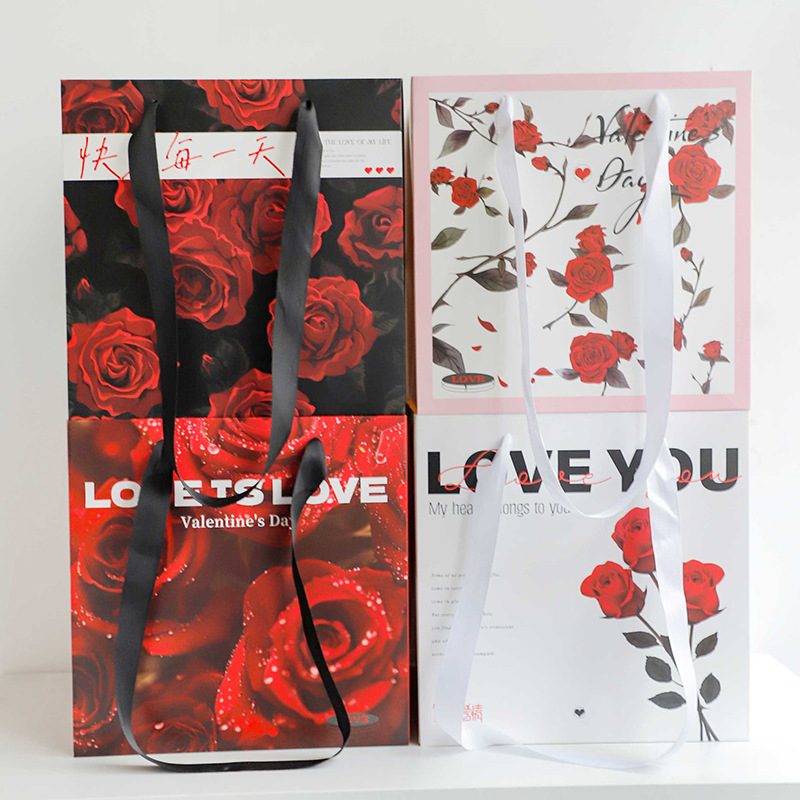 花熙優しい薔薇手提げ袋花包装材料バレンタインデー正方形プレゼント花芸袋