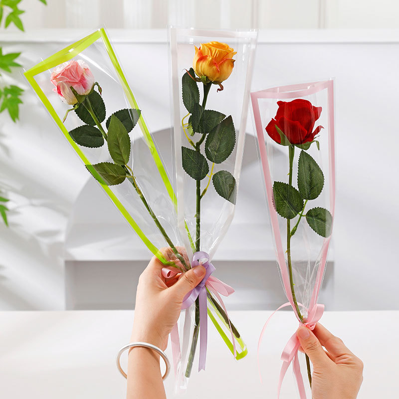 花熙カラー枠単枝袋花バラ透明opp包装袋手作りdiy花芸包装材料