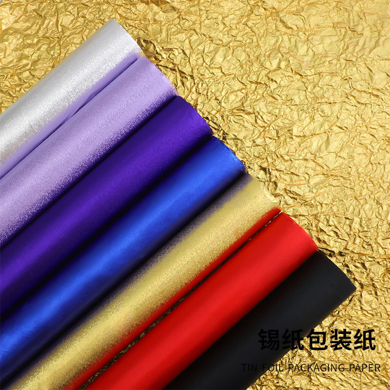 花熙銀色錫箔包花チョコレートキャンディー紙花束手作りdiy錫紙包装紙花屋花芸