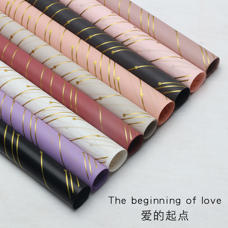花熙クロスボーダー愛の起点生花包装紙韓素紙金線プリント防水霧面紙花屋卸売り