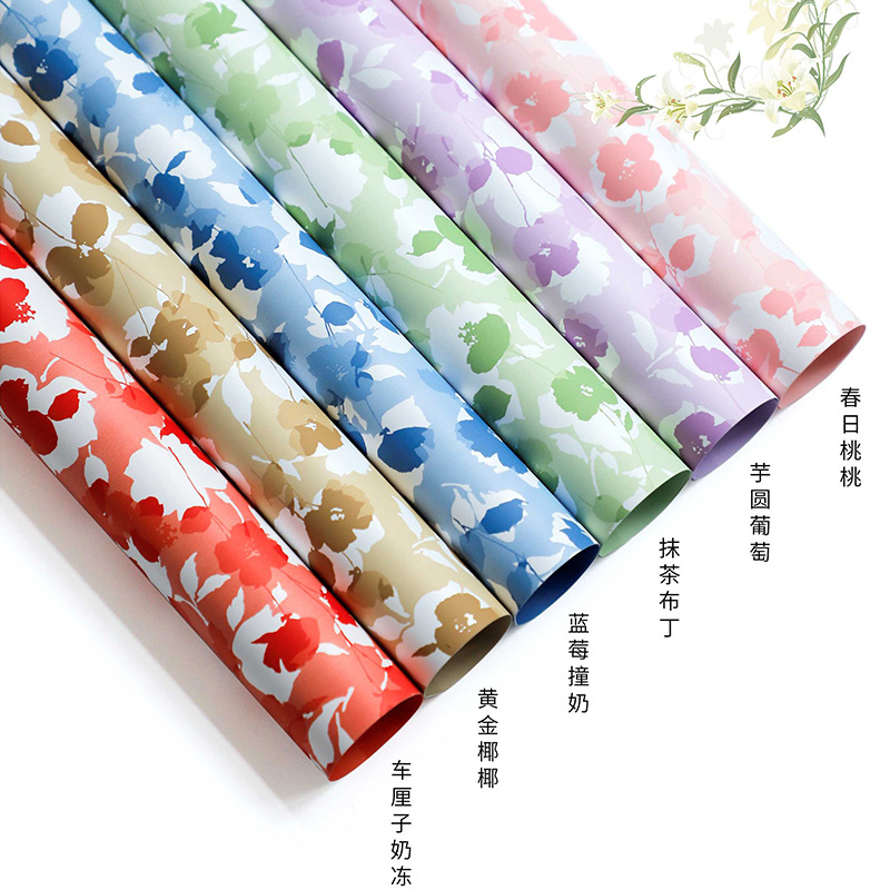 花熙小英語韓素紙卸売り花包装紙花束包装材料防水霧面紙花屋材料