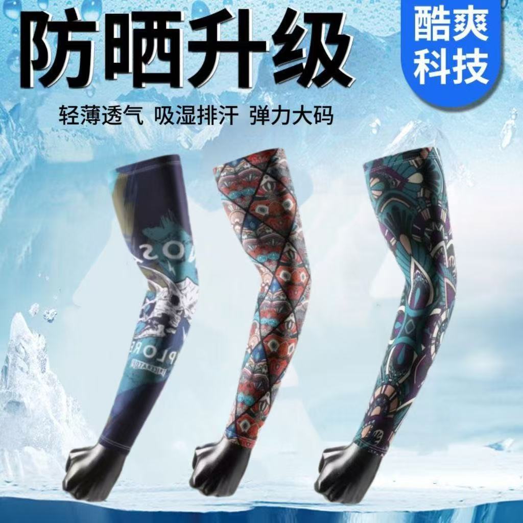 夏のアイスシルク日焼け止めアイススリーブメンズサイクリング抗UV通気性ロングアームドライビングアームガードパターンスリーブ