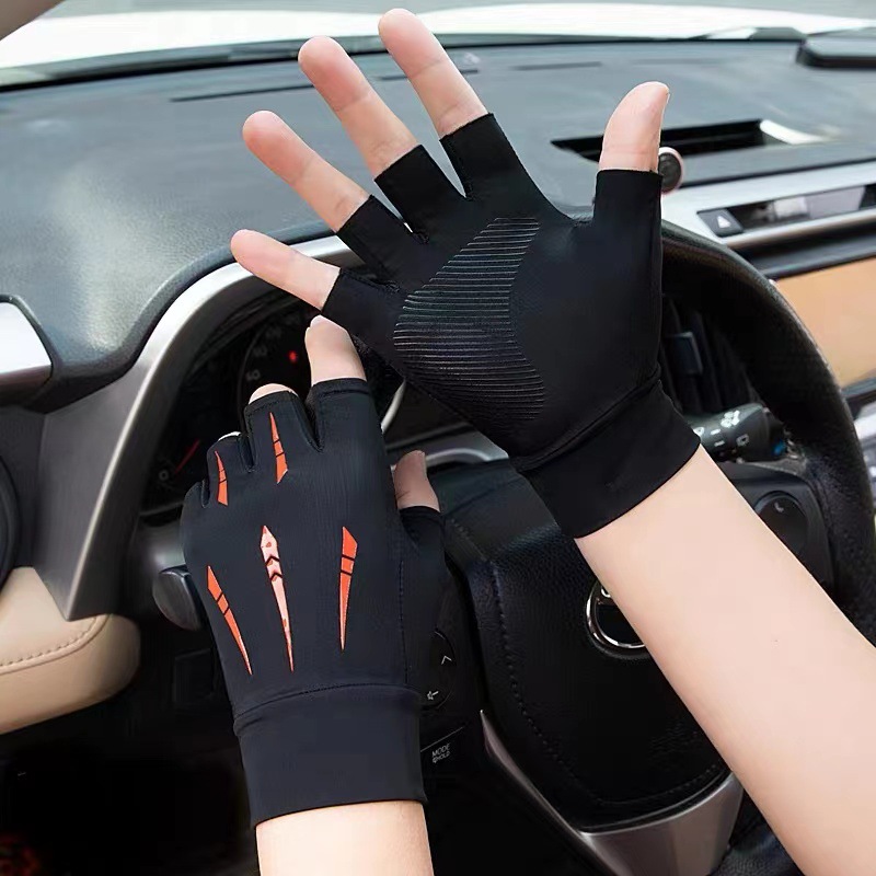 日焼け止め自転車手袋男性夏の薄い通気性滑り止め氷糸運転漏れ指亜釣り半指手袋