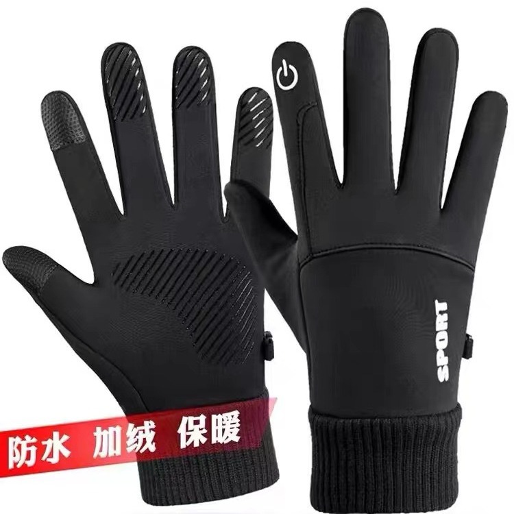 手袋男冬保温屋外防寒防風ベルベットタッチパネル自転車でバイクを運転している