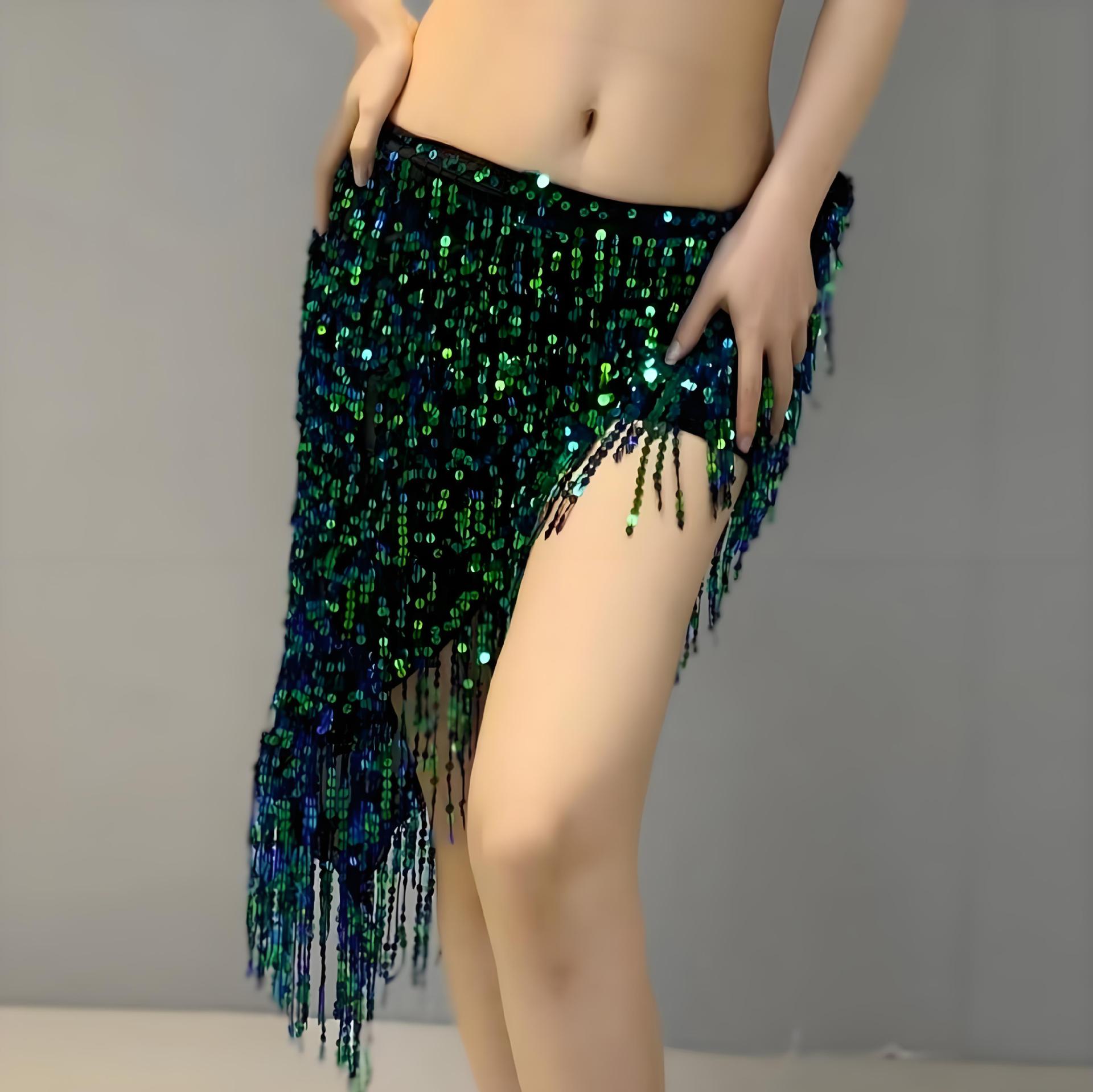 ベリーダンスの練習服ウエストチェーンのヒップタオルのスカートのスパンコール