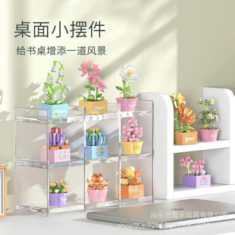 クロスボーダーの花が鉢植えのシリーズの微粒子を飾って積み木の花の永生の花のおもちゃの祝日の小さい贈り物を詰めて卸売りを代行します。