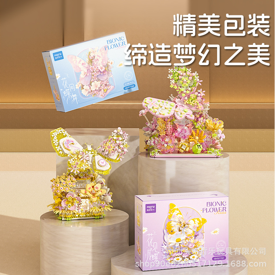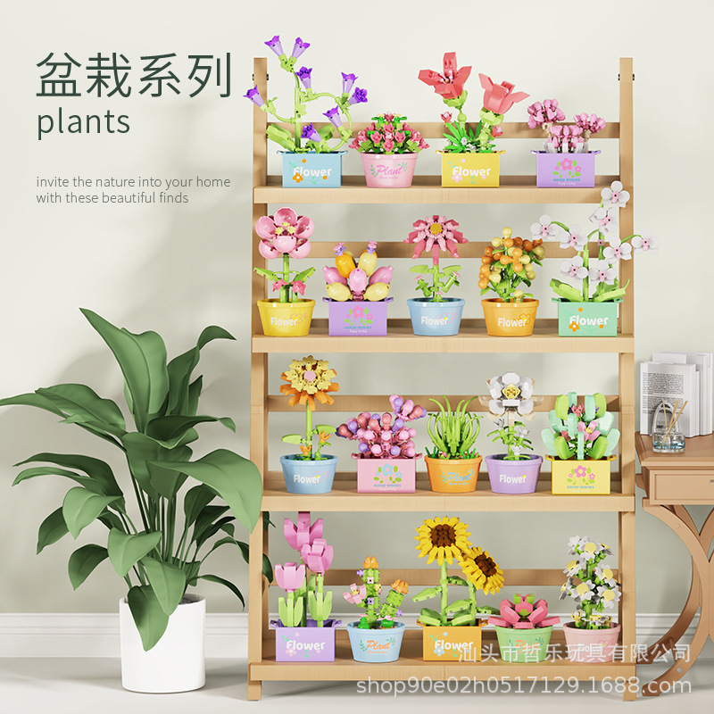 クロスボーダー創意花と小皿夢の組み合わせ益智微粒子積み木祝日プレゼントデスクトップ置物卸売り