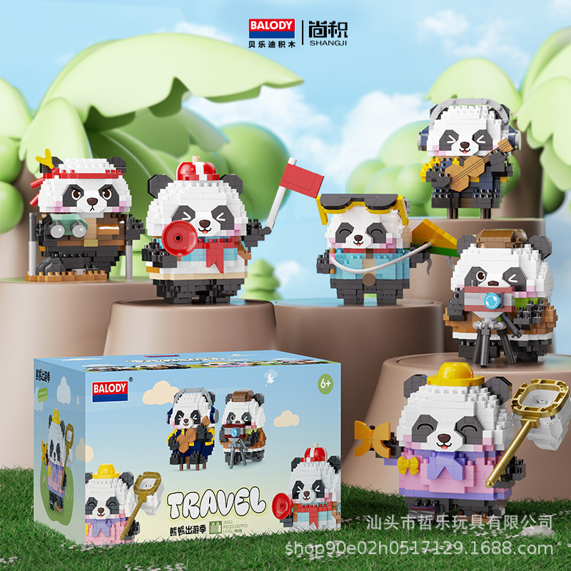 国宝の花のパンダの旅行シリーズの小さい粒子の積み木のデスクトップの置物の女の子の祝日の贈り物の卸売りは代行します。