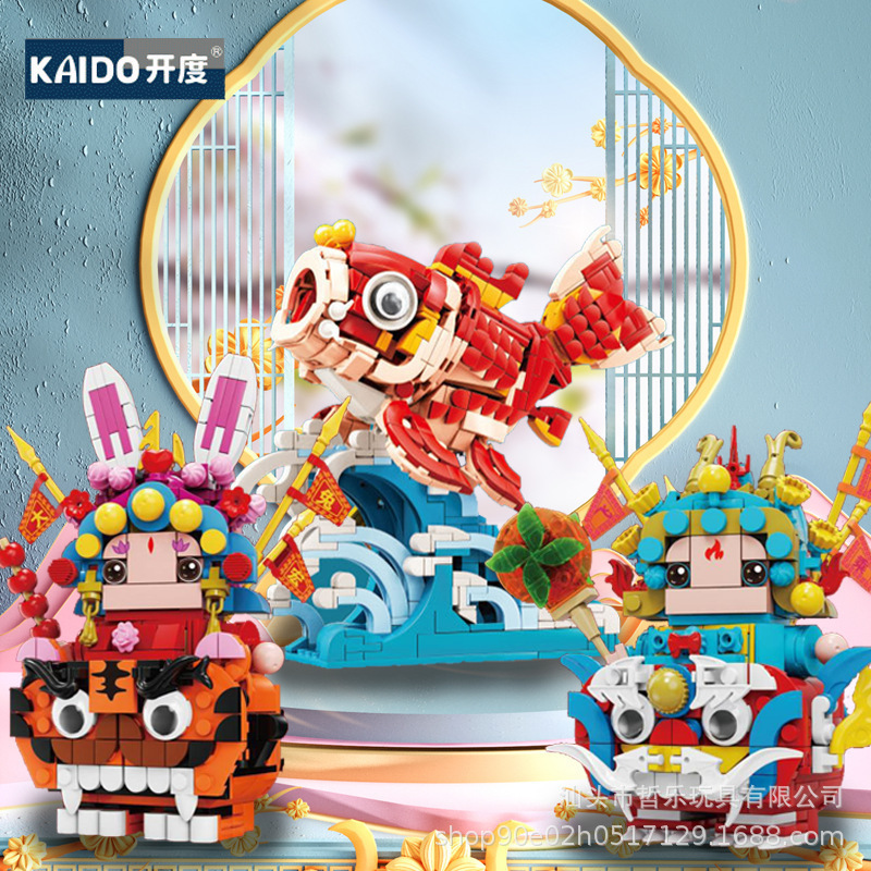クロスボーダー福運国潮シリーズ潮遊び錦鯉置物小粒積み木公仔子供益智小玩具卸売り