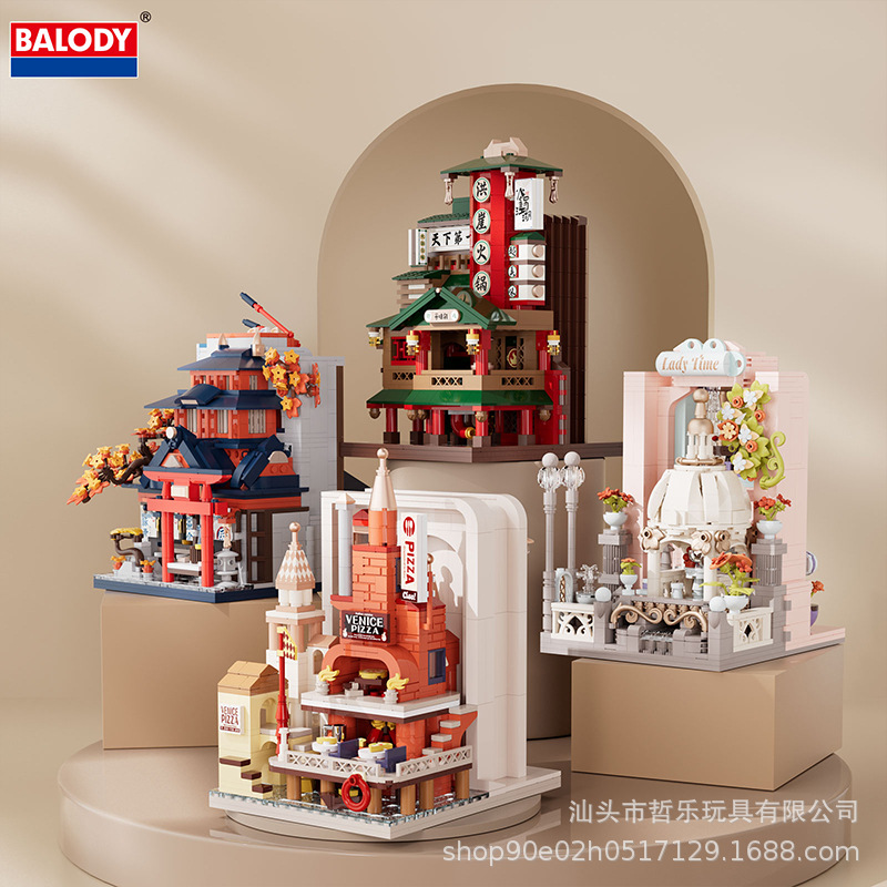街景建築カード美食街火鍋店ピザ店児童知育盛り合わせ小置物国境を越えた卸売り代発