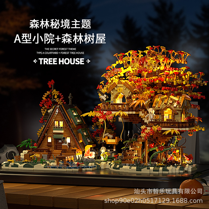 越境創意街景建築模型春色秋色森林樹屋益智つづり積み木置物玩具卸売り