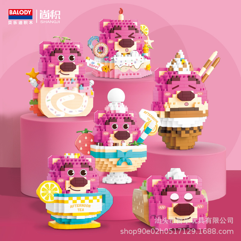 国境を越えて卸売りしてピンクの熊の美食のパーティーの小さい粒子の積み木の益智を遊んでおもちゃの祝日の小さいプレゼントを詰めます。