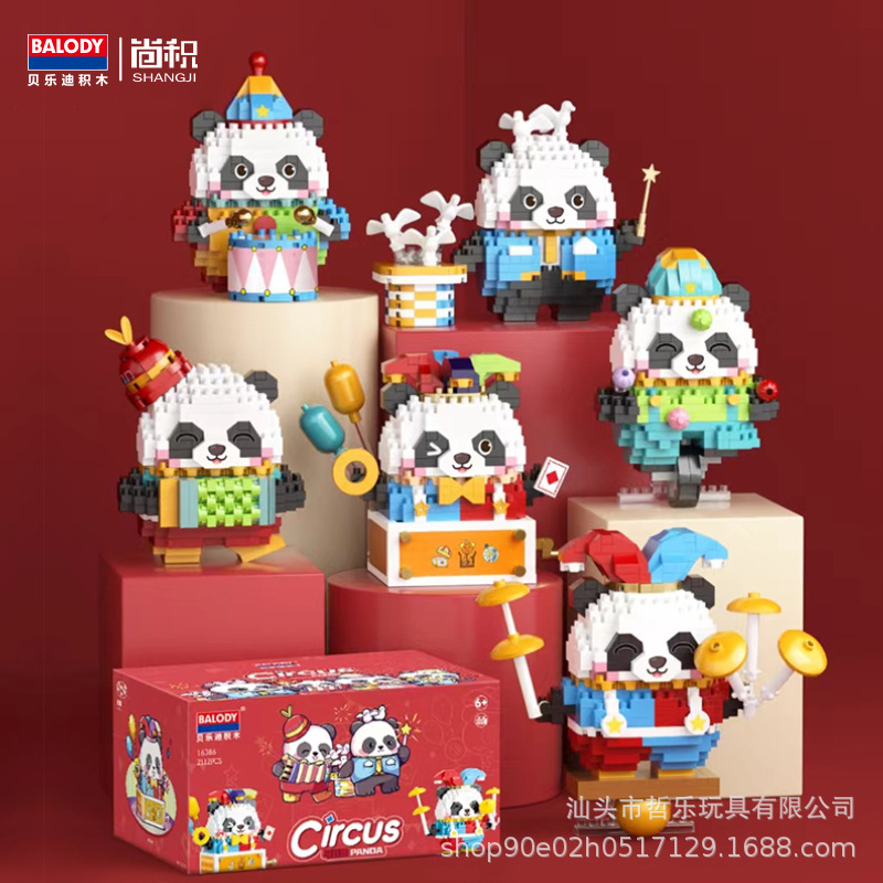 貝楽迪サーカスの花のパンダのシリーズの小さい粒子の積み木のぬいぐるみの置物のおもちゃは国境を越えて卸売りします。