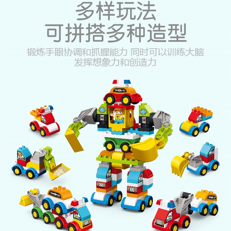 子供用大粒の積み木を合わせて変形工事車を作ります。