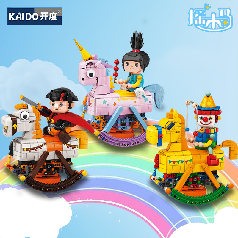 クロスボーダー青春パーティーシリーズの小粒益智は子供のおもちゃを組み立てて馬の小さい置物の積み木を振ります。