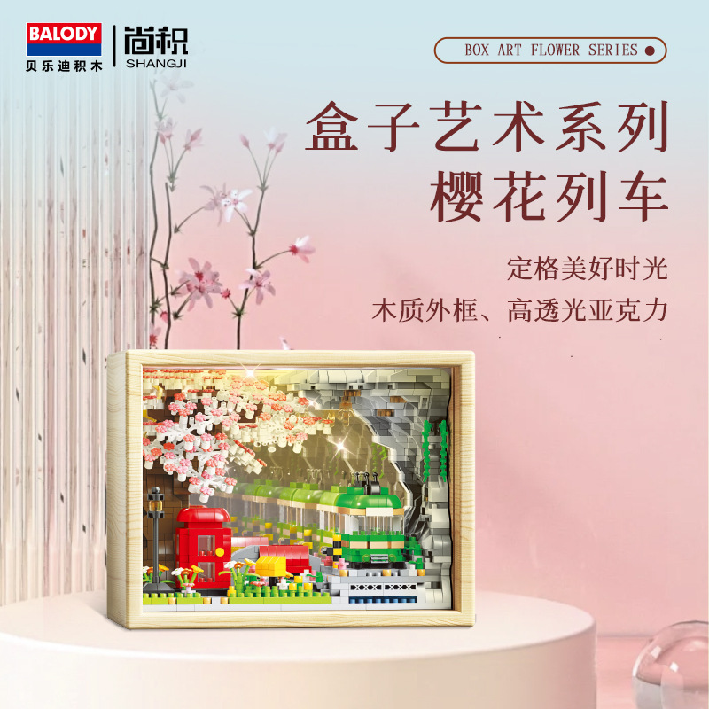 桜の木の家のレトロな列車の鏡像の木の枠の女の子の祝日の贈り物の益智は積み木のデスクトップの置物をつづり合わせます。