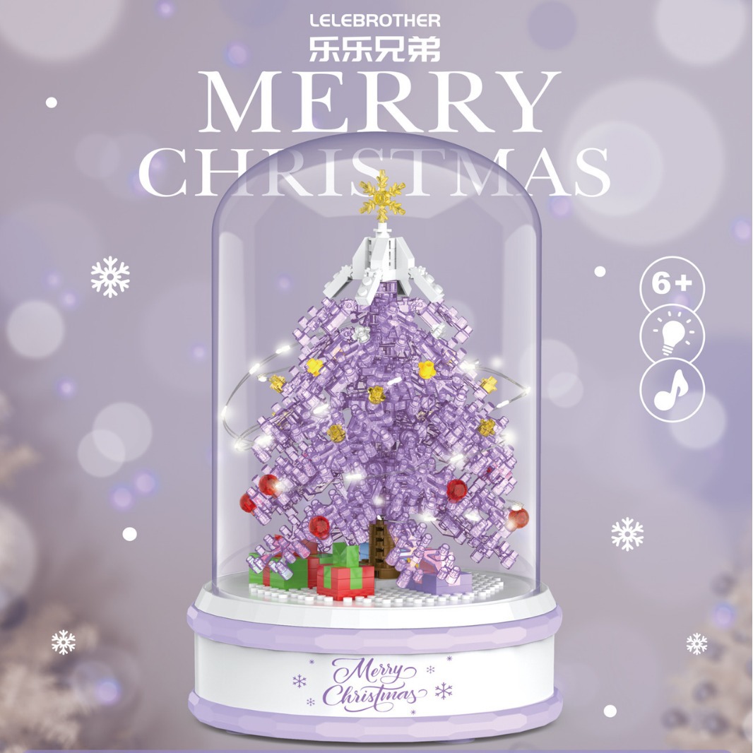 お姫様城桜建築樹屋は微粒子積み木男の女の子のおもちゃのテーブルの上にプレゼントを飾っている