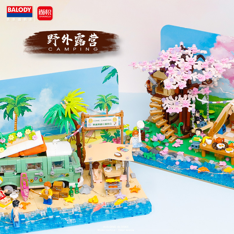 クロスボーダーdiyピクニックキャンプシーンの模型子供の益智創意の組み合わせはレゴの積み木の小さいおもちゃと互換があります。