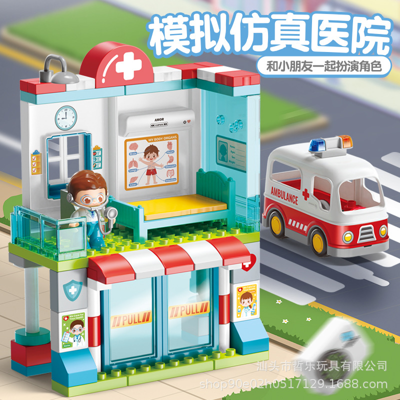 Feile City Hospital 救急救命シーンシリーズビルディングブロック組み立て子供の教育ビルディングブロックままごと救急車のおもちゃ