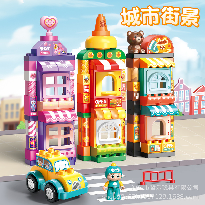 新しい大粒子車ビルディングブロック城ストリートビュービルディングパズル組み立て装飾品おもちゃ男の子と女の子の誕生日プレゼント