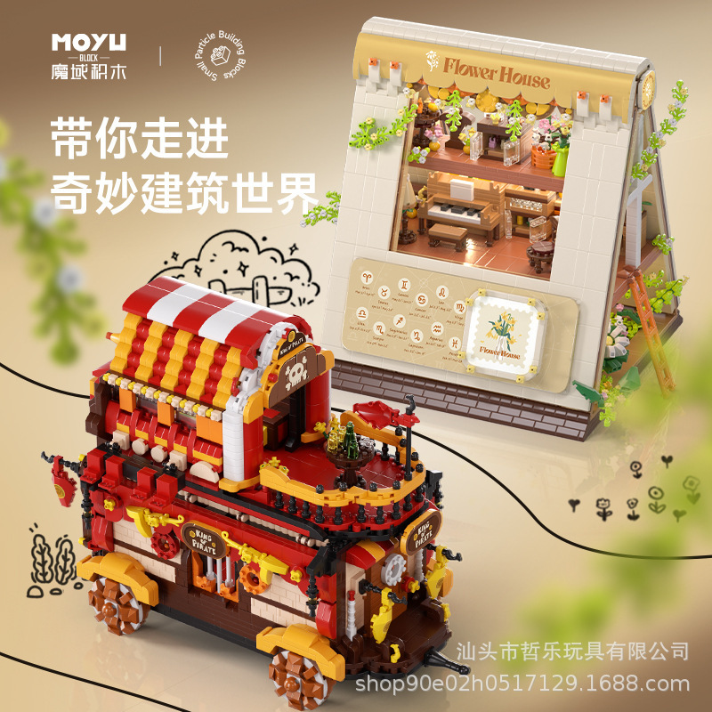 国境を越えた微粒子ビルディングブロック、レジャー教育パズル、シーン、ストリートシーン、建築シリーズ、スナックカー、デスクトップ装飾品の卸売