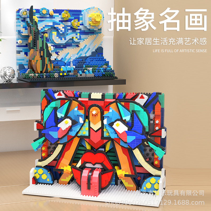 クロスボーダーアートゴッホ星空月夜神奈川ポップ立体ビルディングブロックおもちゃデスクトップ装飾品卸売