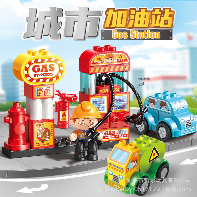 Feile 子供の大きな粒子ビルディングブロックガソリンスタンド車組み立て漫画少年ギフトモデル教育小さなおもちゃ