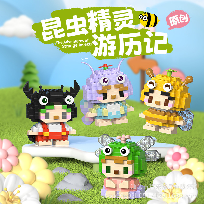 ミニ小さな粒子パズルビルディングブロック昆虫エルフシリーズ人形屋台子供のギフトクロスボーダー卸売