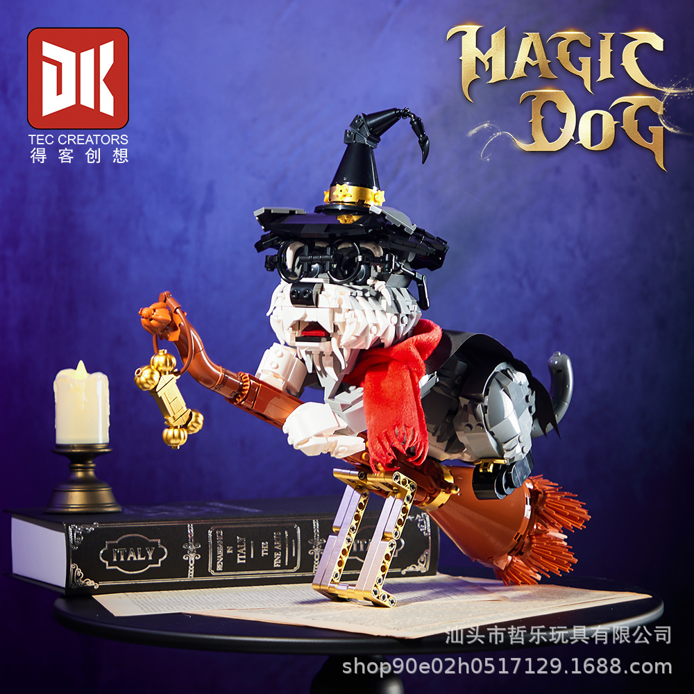 国境を越えた小さな粒子ビルディングブロック魔法のほうきドクタードッグトレンディな組み立てパズルマジックタワー飛行犬装飾モデル卸売