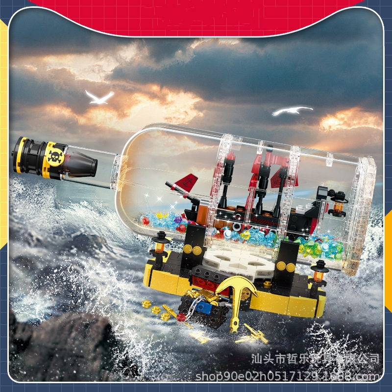 国境を越えた瓶の中の船海賊船の灯台のデスクトップの置物の模型の子供の男の子はつづり合わせておもちゃの贈り物の卸売りを組み立てます。